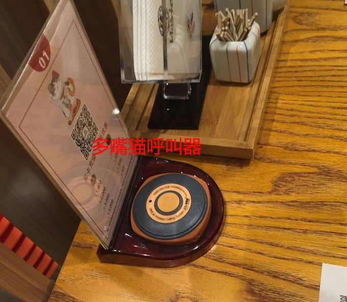在東泗日本料理店的每張餐桌或者包間內(nèi)都安裝了一個(gè)多嘴貓呼叫器,客人在就餐時(shí)需要找服務(wù)員點(diǎn)菜、加菜或者提供服務(wù)時(shí),只需要按一下多嘴貓呼叫器就可以呼叫服務(wù)員。