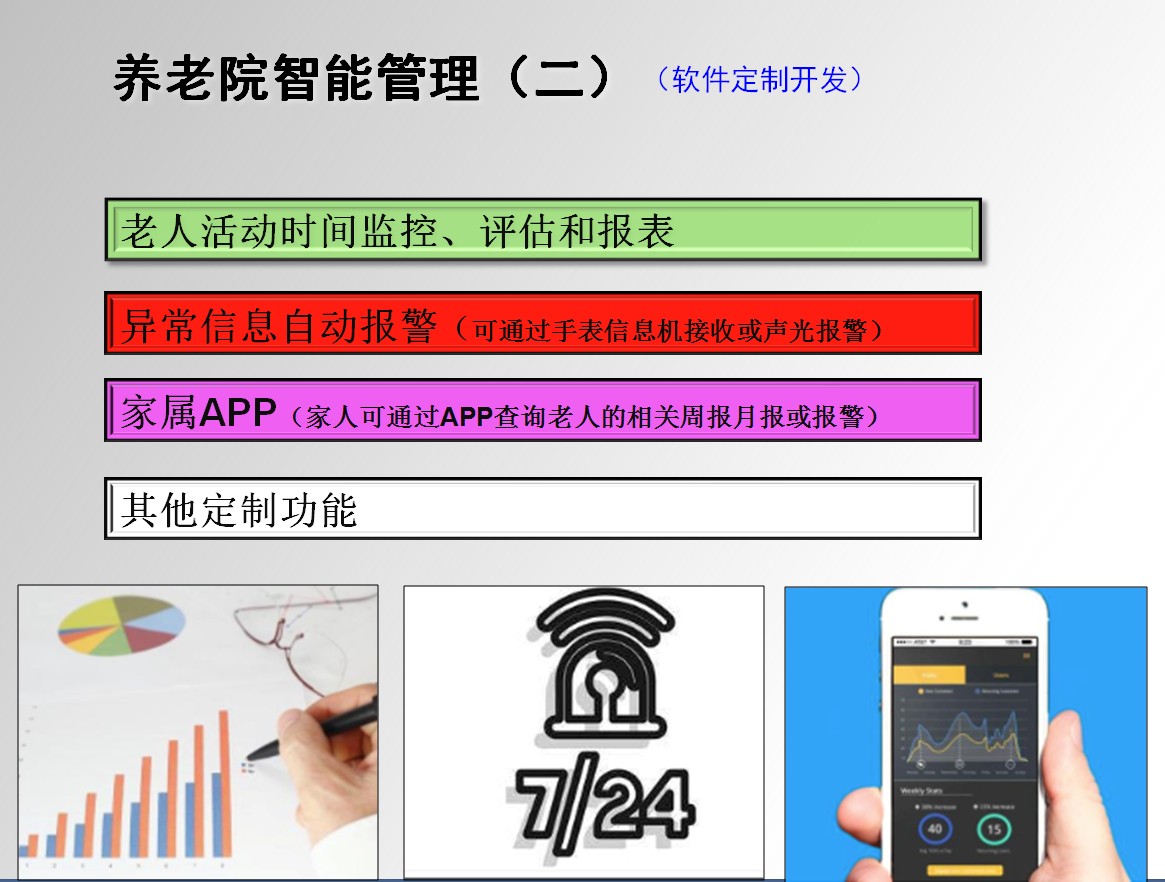 系統(tǒng)擴(kuò)展性強(qiáng)(定制軟件功能、手表接收報(bào)警信息、監(jiān)控?cái)z像和警燈聯(lián)動(dòng)及家屬APP報(bào)表等)