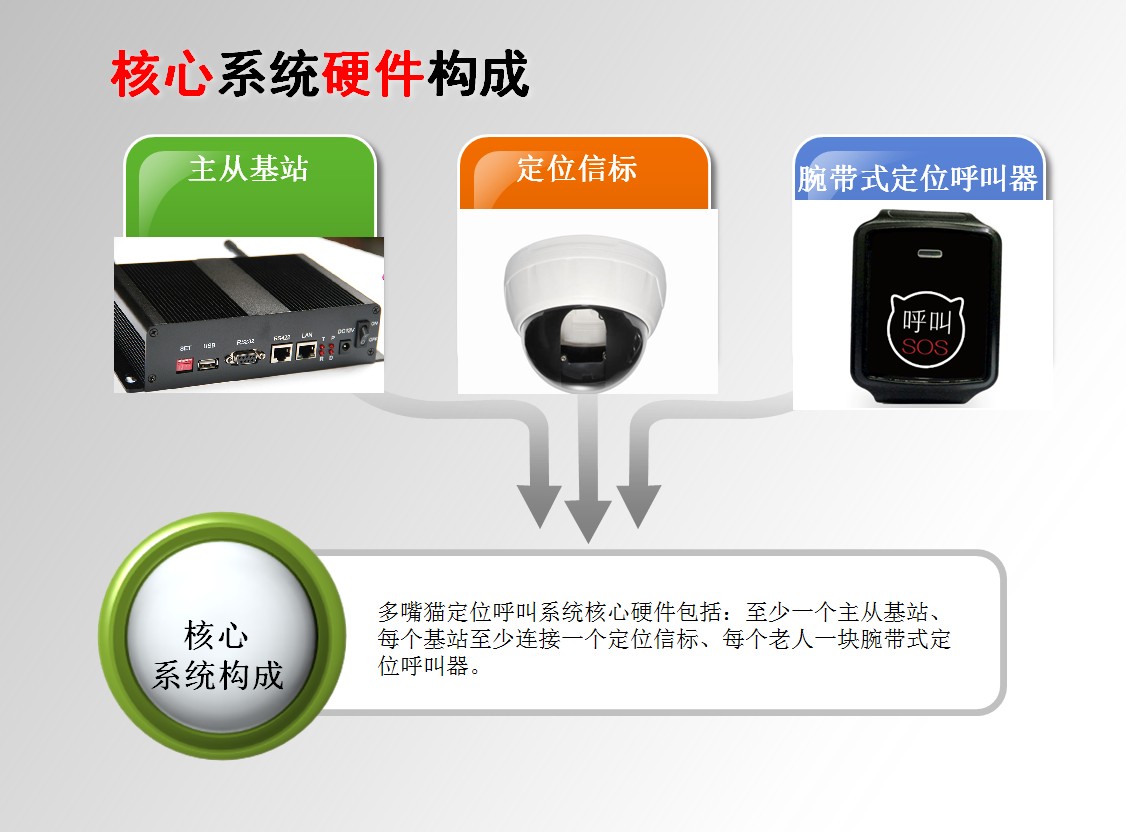 多嘴貓人員定位呼叫系統(tǒng)將整個(gè)社區(qū)的室外區(qū)域納入無線定位救助監(jiān)護(hù)范圍,通過在園區(qū)建立整體定位數(shù)傳無線信號(hào)覆蓋,為每位老人和工作人員都配發(fā)腕帶式可充電無線定位呼叫器,具有區(qū)域定位,身份識(shí)別、緊急救助定位等綜合功能。