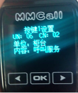 單鍵呼叫器肯定對(duì)應(yīng)單鍵模式;多鍵呼叫器可以對(duì)應(yīng)多鍵模式和單鍵模式,當(dāng)多鍵呼叫器對(duì)應(yīng)單鍵模式的時(shí)候就相當(dāng)于多個(gè)單鍵呼叫器,每個(gè)呼叫器的按鍵就可以設(shè)置一個(gè)號(hào)碼。如果多鍵呼叫器對(duì)應(yīng)多鍵模式,在設(shè)定呼叫器號(hào)碼的時(shí)候只能設(shè)置一個(gè)號(hào)碼,然后在管理員設(shè)置 界面中選擇第四項(xiàng)“按鍵顯示”這一項(xiàng),可以對(duì)多鍵呼叫器不同按鍵設(shè)定顯示單位和內(nèi)容。按中間OK鍵確定,一直到五鍵設(shè)置結(jié)束。