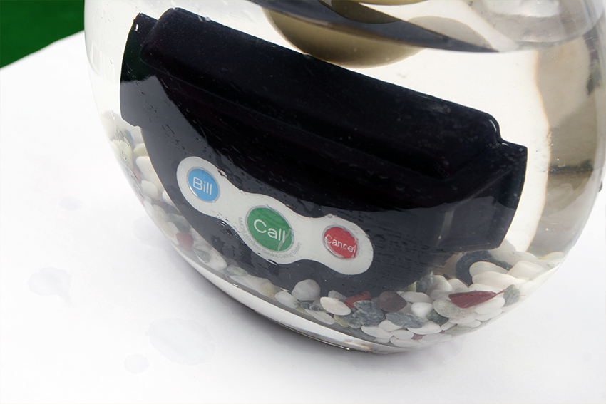 多嘴貓推出半圓形餐牌三鍵調(diào)頻呼叫器,全聚德、眉州東坡等著名餐飲企業(yè)的選擇。高檔紫褐色半透明PC料外殼,三色600流明的提示燈,雙層臺(tái)灣進(jìn)口4毫米磁吸亞克力餐盤或8毫米半圓可激光雕刻亞克力餐盤。