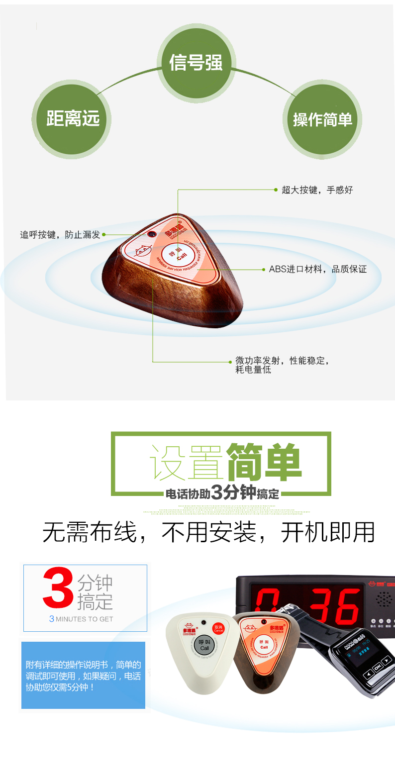 白色經(jīng)典款三角兩鍵調(diào)頻呼叫器,低功耗、無輻射、信號(hào)穩(wěn)定,有呼叫和確認(rèn)功能,方便呼叫和服務(wù)管理,可配軟件使用!