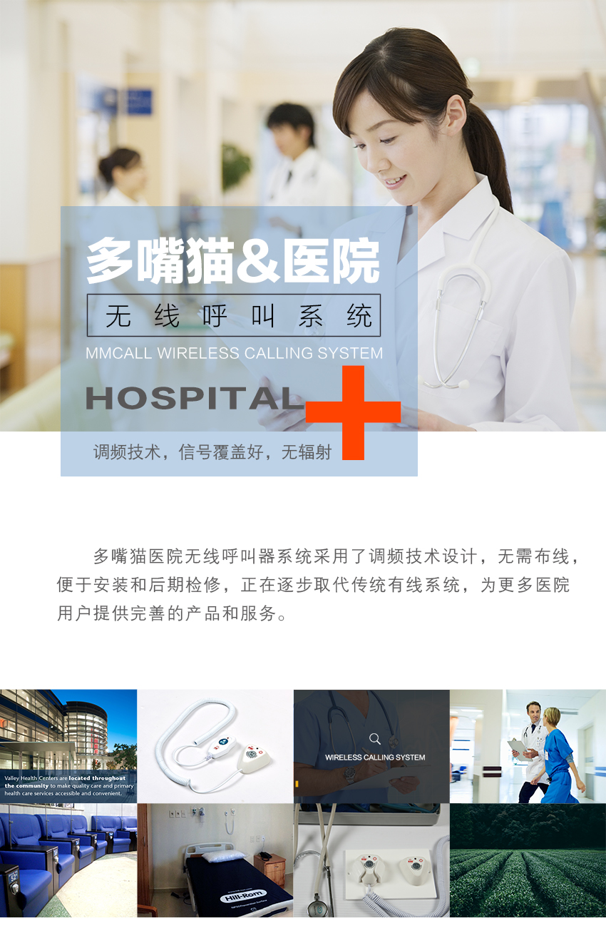 此款呼叫器為多嘴貓調(diào)頻技術(shù)的呼叫器,適合醫(yī)院、養(yǎng)老院等場所使用,發(fā)射功率僅為1毫瓦,無輻射,對醫(yī)療器械無干擾,由于采用調(diào)頻高效無線編解碼技術(shù),信號覆蓋可滿足醫(yī)院和養(yǎng)老院一棟或多棟大樓的,還可以搭配多嘴貓多款主機使用。