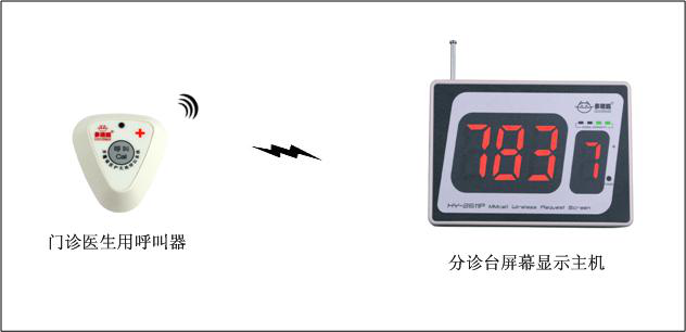 ? 使用說明:在門診的分診臺安裝一臺主機(jī)P型主機(jī),在各門診安裝一個呼叫器,當(dāng)醫(yī)生看完一個病人,可以按呼叫器,通知分診臺安排下一位病人。分診臺可以通過P型主機(jī)顯示的編碼來判斷是那個門診發(fā)出的信息。