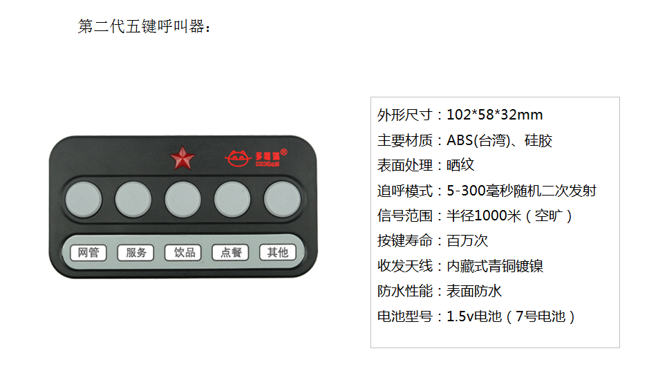 ? 推薦產(chǎn)品:多嘴貓第二代五鍵呼叫器、賽剛單鍵防摔呼叫器、T8100語(yǔ)音控制中心、對(duì)講機(jī)
