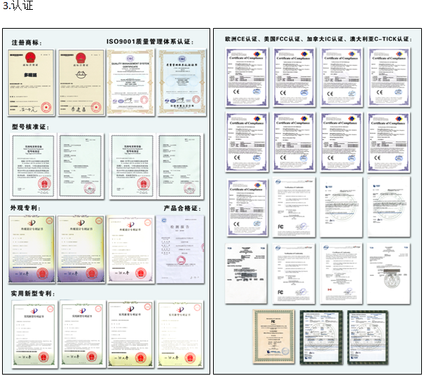 多嘴貓無(wú)線(xiàn)呼叫產(chǎn)品的穩(wěn)定是源于多嘴貓對(duì)品質(zhì)控制的執(zhí)著追求,多嘴貓產(chǎn)品的質(zhì)量控制是從元器件采購(gòu)到成品出庫(kù),每一個(gè)環(huán)節(jié)都有控制標(biāo)準(zhǔn)。多嘴貓深圳工廠(chǎng)生產(chǎn)超過(guò)30種不同類(lèi)型的無(wú)線(xiàn)呼叫器、近20中不同型號(hào)的無(wú)線(xiàn)控制主機(jī)或屏幕、幾十種不同的無(wú)線(xiàn)接收器、中繼器以及各種配套產(chǎn)品和組件。生產(chǎn)中國(guó)標(biāo)準(zhǔn)的無(wú)線(xiàn)呼叫系統(tǒng),同時(shí)還提供滿(mǎn)足歐洲CE認(rèn)證標(biāo)準(zhǔn)、美國(guó)FCC認(rèn)證標(biāo)準(zhǔn)、加拿大IC認(rèn)證標(biāo)準(zhǔn)以及澳大利亞等國(guó)標(biāo)準(zhǔn)的無(wú)線(xiàn)呼叫產(chǎn)品。年呼叫器產(chǎn)量可達(dá)50萬(wàn)個(gè),并且通過(guò)了ISO9001國(guó)際質(zhì)量體系認(rèn)證。